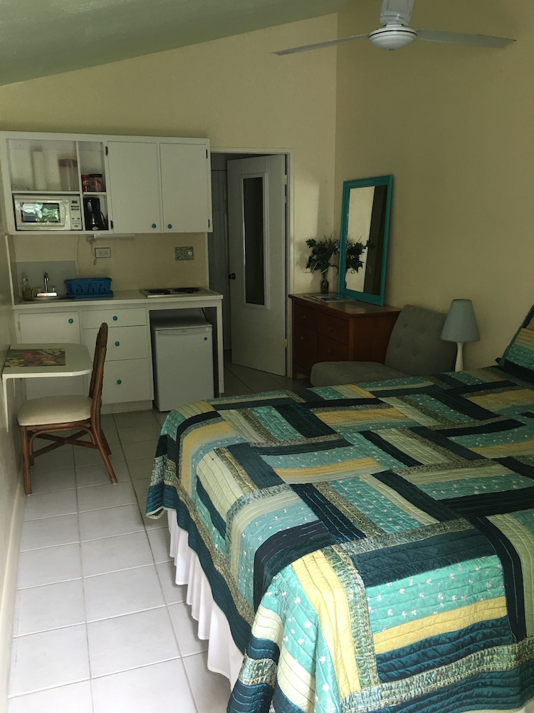 Eldemire Tropical Island Inn, has an unprecedented reputation as the most affordable hotel on Grand Cayman, ever since the family started this business 30 years ago. We offer bright, tropically-decorated, air-conditioned Standard Rooms and self-contained Garden Suites, which all have private ensuite bathrooms and TV. Guests in the Standard Rooms, share cooking facilities, and in the Garden Suites the kitchens are private. So you can SAVE dollars by not having to eat out. We have a spacious pool deck (with BBQ grill, etc.), and swimming pool surrounded with lush tropical vegetation. A 50% Discounted Boat snorkel trip to Stingray/Sandbar or Rum-Point Beach is offered by us and also FREE Wireless Internet Access. We are known for our friendliness and have many repeat guests. Our location is close to exquisite Smith Cove Beach, downtown Georgetown, duty-free shopping, oceanfront bar and restaurant, beautiful seaside park, art/craft gallery and the airport. Our Dive Instructor can certify you or can escort you on a shore dive or snorkeling tour, within minutes of the property.