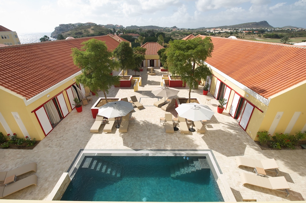 The Bayside Boutique Hotel is a luxurious and exclusive "boutique hotel" with its own restaurant ('Pictures'), situated at the beautiful Blue Bay Golf & Beach Resort, just 50 metres away from the gorgeous beach. The resort boasts an 18-hole golf course, a beach store, several tennis courts and restaurants, a diving school and a playground for the children. The hotel is located between the airport and the centre of Willemstad, which are both just 8 minutes away by car.