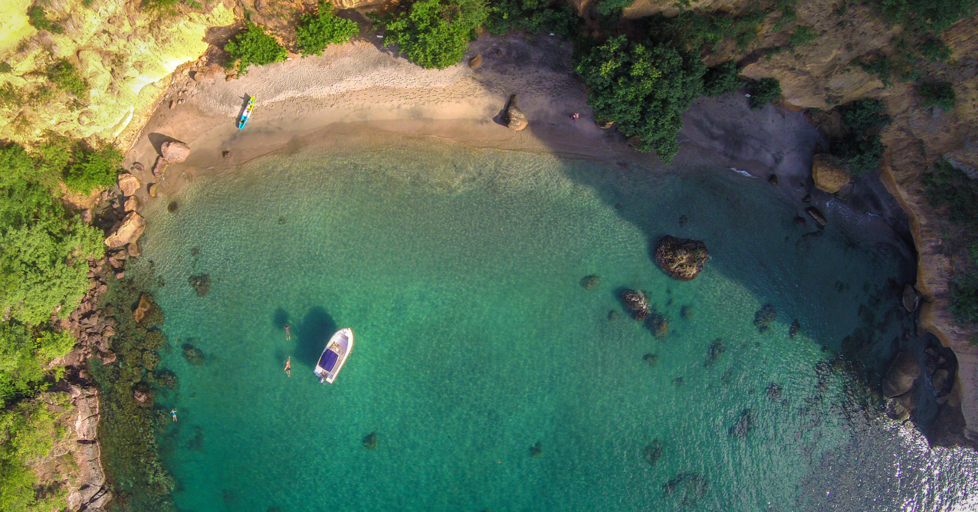 Secret Bay has direct access to two paradisiacal swimming beaches: Tibay Beach, and the soft white-sand Secret Beach, inclusive of a natural rock-formed arch, hidden sea-cliff cave, and rich marine life. Guests are given unlimited complimentary access to adventure equipment such as kayaks, paddle boards, and snorkel gear.