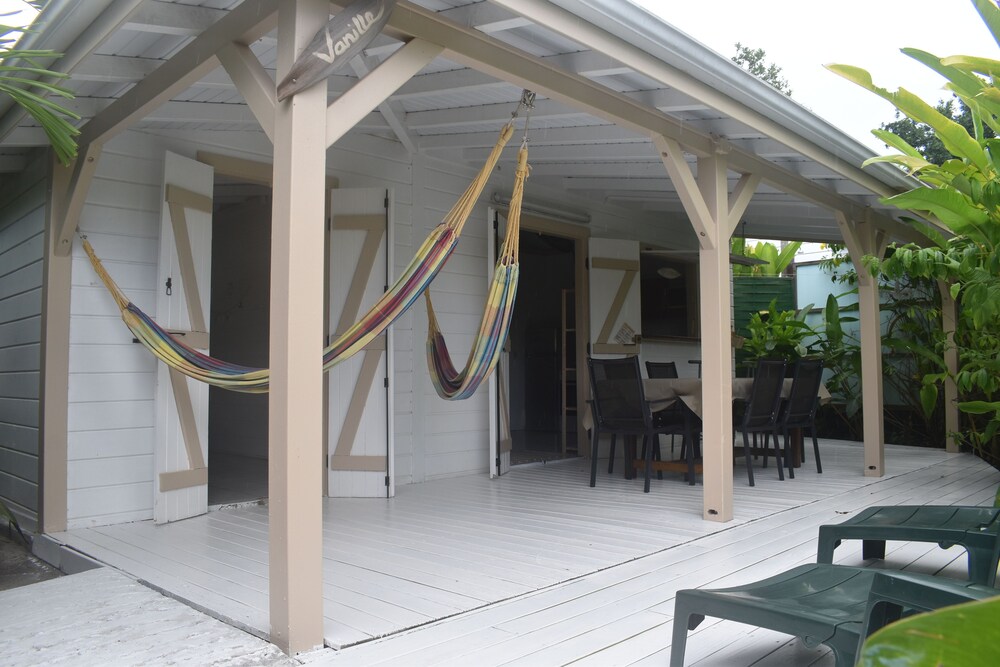 In a tropical garden flowered with large jacuzzi and pool amidst nature. Your Guadeloupe bungalow, in a quiet position, 150 m from the lagoon, 10 minutes walk from the public beach of La Caravelle (Club Med), 1.5 km from the town of Sainte Anne (Guadeloupe), its shops, its daily market the colors of the Caribbean.