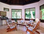 Located on the South Coast adjacent to Bluefields Beach, Cottonwood Cottage is a deluxe two-bdrm, two-bath, child-friendly, beachfront villa. It features a full kitchen, living room and bar area, indoor and outdoor dining, CD/cassette player and a new infinity-edge swimming pool with whirlpool jets, 20-ft shallow area and 40-ft lap area. The two large bdrms (each 19 ft x 22 ft) have air conditioning, ceiling fans, ensuite baths and fabulous views of the Caribbean Sea. The master bdrm has a four-poster, king-sized bed, private terrace overlooking the sea and an exotic 4 ft x 6 ft marble shower that can open out to the tropical garden and sea view. The second bdrm has two twin beds and a private dressing room. Property amenities include a tennis court, gazebo, full staff and The Treehouse beach pavilion with bar, extensive dining and living space, small kitchen and powder room, and the site of a weekly cocktail party and a weekly jerk chicken luncheon.