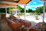 Guests can enjoy the view and the cool tropical breezes from the roomy patio which is situated off the dining/living rooms and above the pool area. This patio is equipped with comfortable chairs for relaxing and also with a table where up to 8 persons can enjoy alfresco dining.