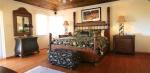 The master bedroom is situated upstairs and guests can enjoy a sea view from their private patio. This bedroom is equipped with a 42 inch plasma TV with a DVD player and surround sound system and a king size bed. There is a spacious walk in closet and an en-suite bathroom with a shower and bath, where guests can enjoy an ocean view from the windows surrounding the large Jacuzzi bath.
