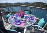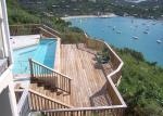 Perched high on Contant Point overlooking Great Cruz Bay, Eaglesnest is a three-bdrm, three-bath, child-friendly hillside villa with a panoramic view of Great Cruz Bay and a magnificent bird's eye views of St Thomas and St Croix. Built in 1997 with native stone, mahogany and cypress accents, it features a multi-level sundeck, a new swimming pool with spa jets, upper and lower decks that span the entire house, indoor and outdoor dining, fully-equipped modern kitchen with a breakfast bar, great room with a high vaulted ceiling, ceiling fans throughout, cable TV, VCR, DVD and CD players, safe, laundry facilities, barbecue, beach coolers and chairs, hammock and mid-week maid service. All bdrms open onto a south-facing deck and have air conditioning and king-sized beds, two of which can be converted into two twin beds. The third bdrm is access from the outside on the lower level.